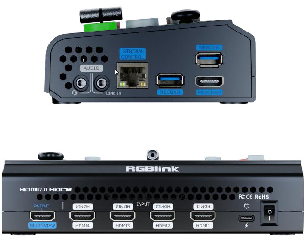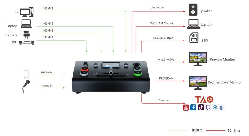 - Livemischer mit vier skalierbaren HDMI-Eingängen,